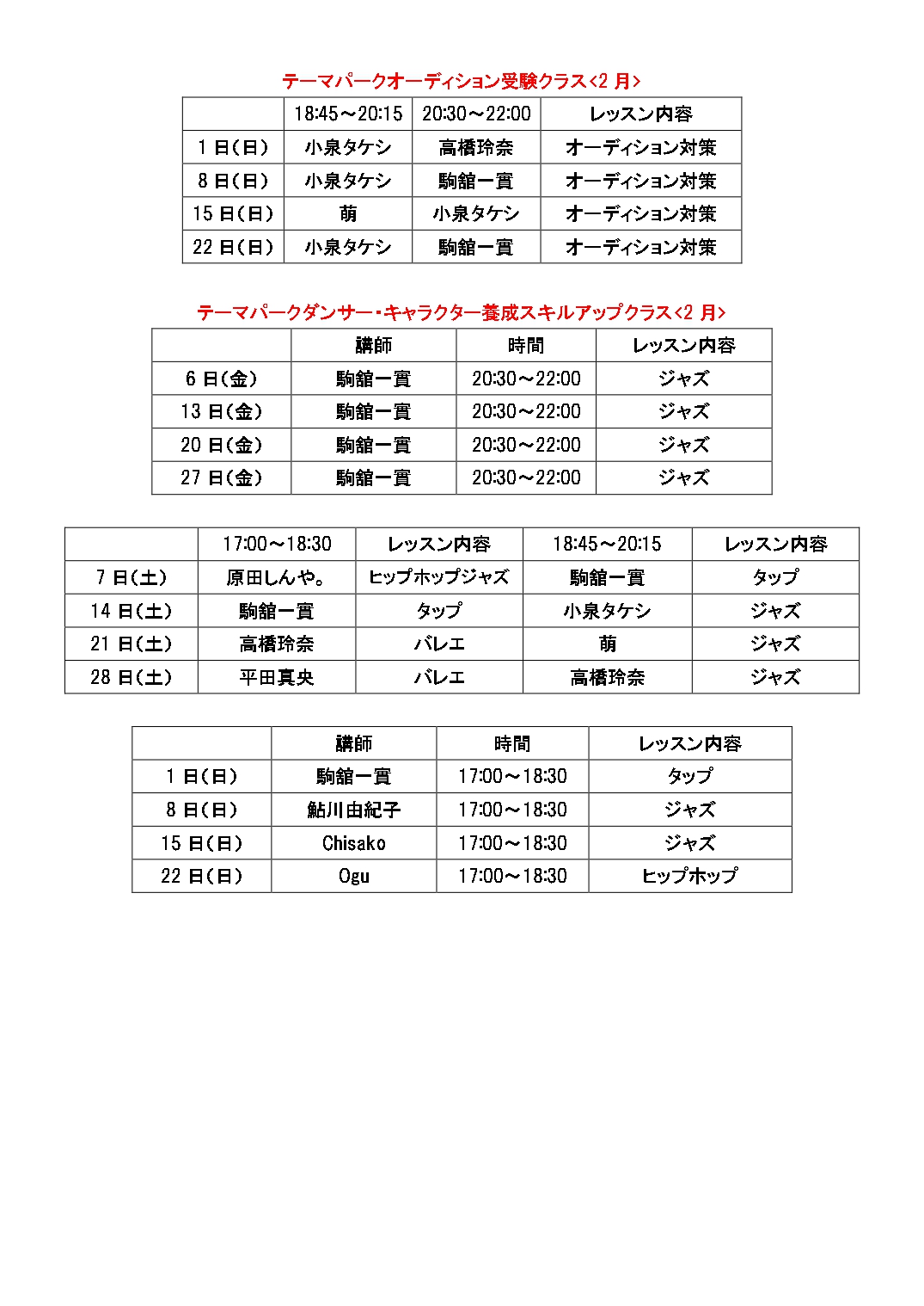 テーマパークオーディションクラススケジュール 2月![]()
